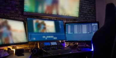 Audio and lighting: Rode and Yamaha audio boards, Avid audio systems, and setting up professional 3-point lighting configurations.
